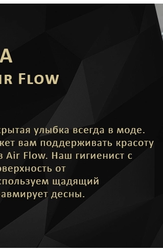 «Аир Флоу» — швейцарская технология безопасной пескоструйной очистки зубов от компании EMS. Она стала мировым стандартом в области профгигиены рта наряду с ультразвуковой чисткой и реминерализацией. Все эти процедуры входят в комплекс профессиональной чистки зубов, который предлагает наша стоматология.